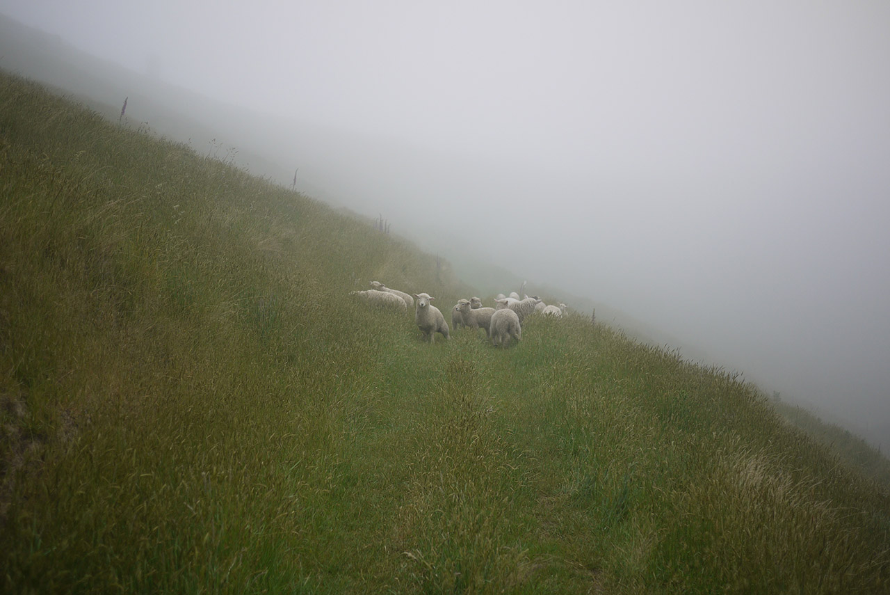 and day three of the four-day banks peninsula track it's me, seven giggling catholic school girls, and four ambling ancients, trekking through seaside pasture lands that overlook the serene aquamarine I've seen heaps of seals and terns and sheep and a few little blue penguins - some of the rarest in the world