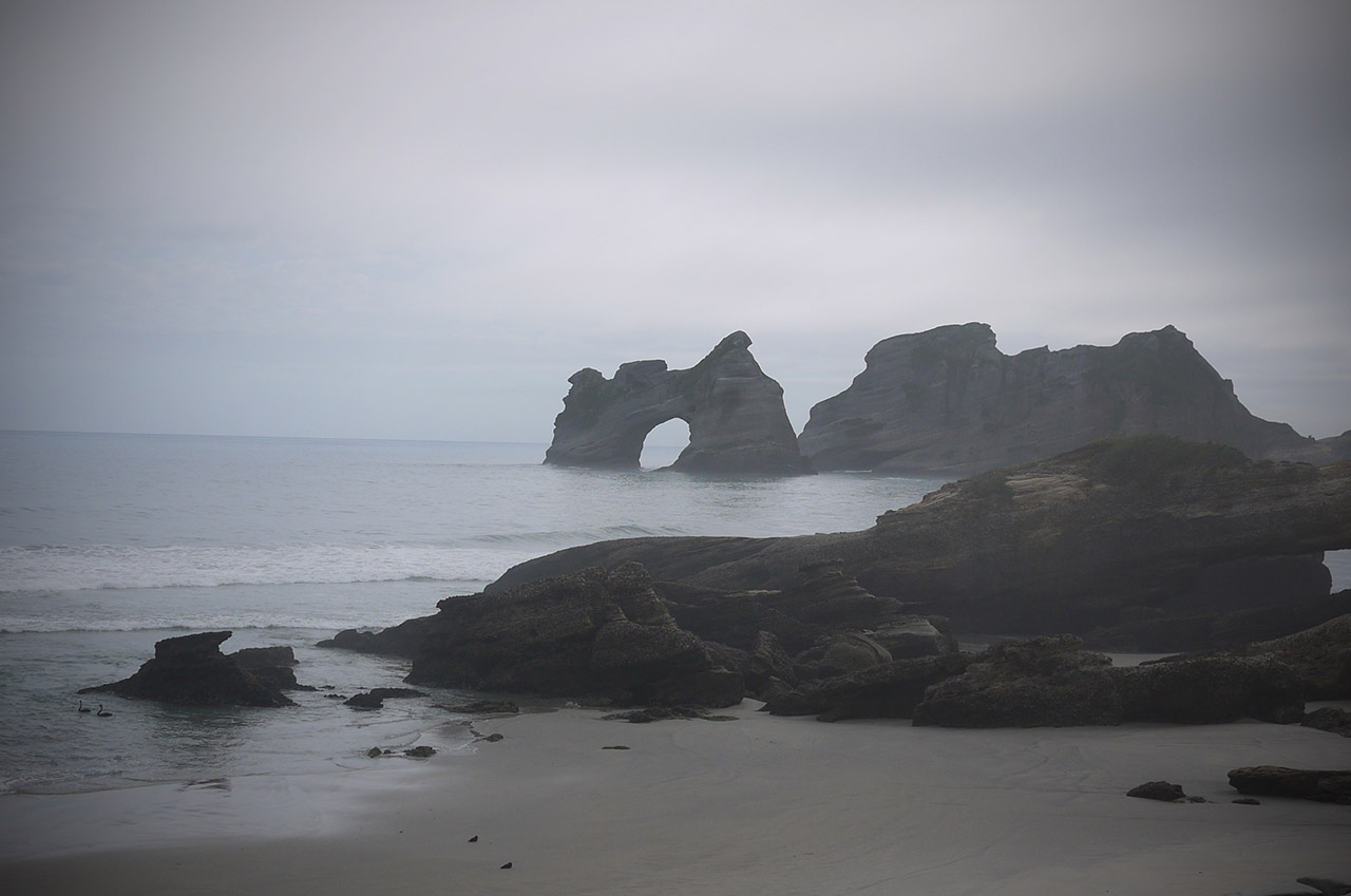 a pair of black swans at wharariki beach