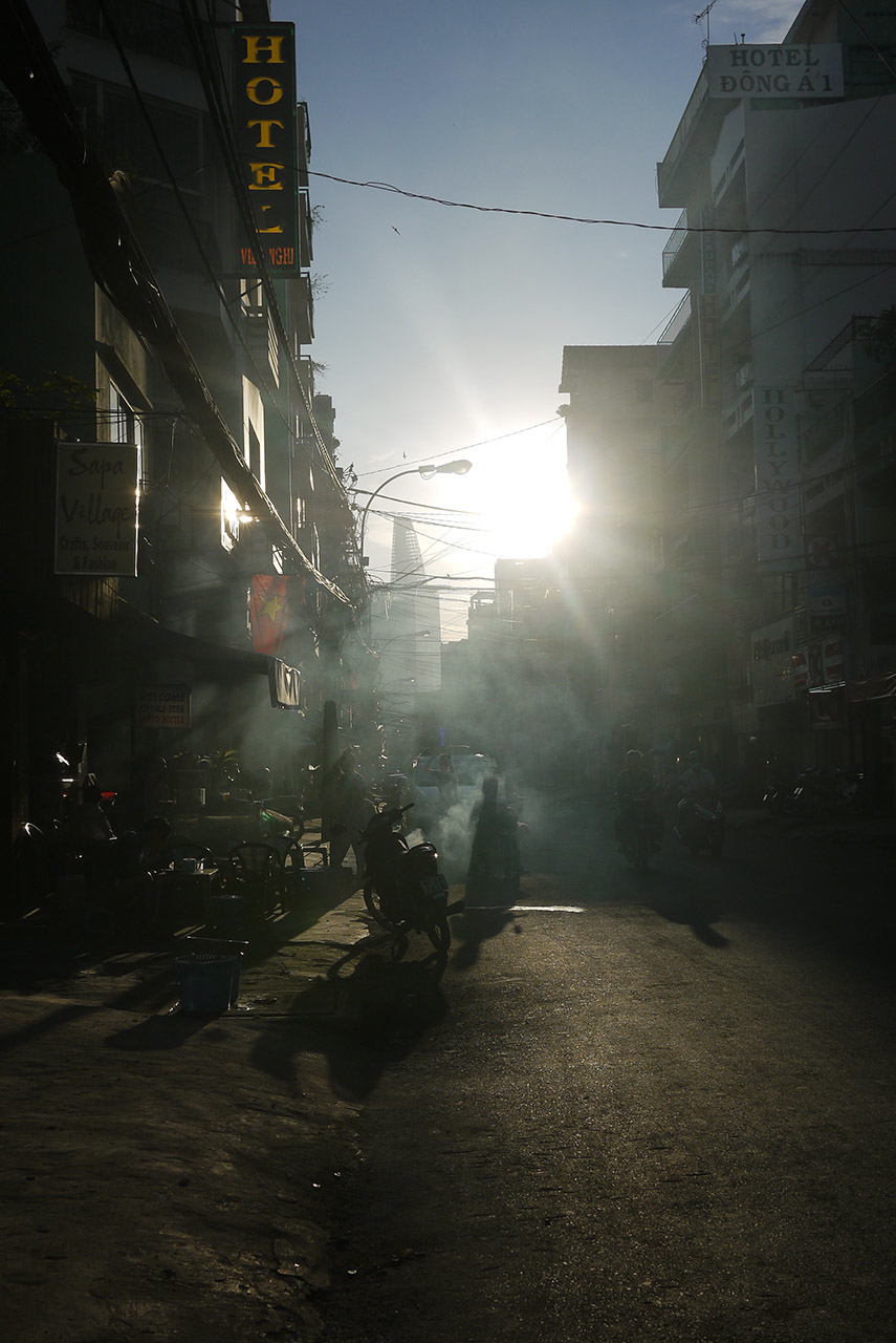 and then i continued on. down streets lined with vendors selling various parts of animals or cell phones. the diversity of goods for sale on the same block is impressive - you can get your hair cut, pick up your market vegetables, and get some metal work done from the arc-welder shooting sparks from his one-square-meter sidewalk workspace beside the banh mi cart.