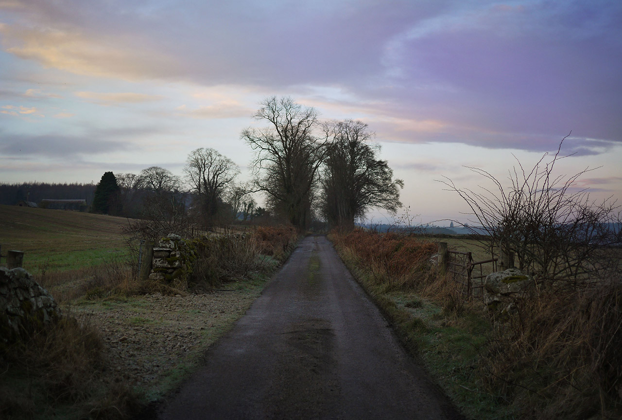 a wintry road to the cottage